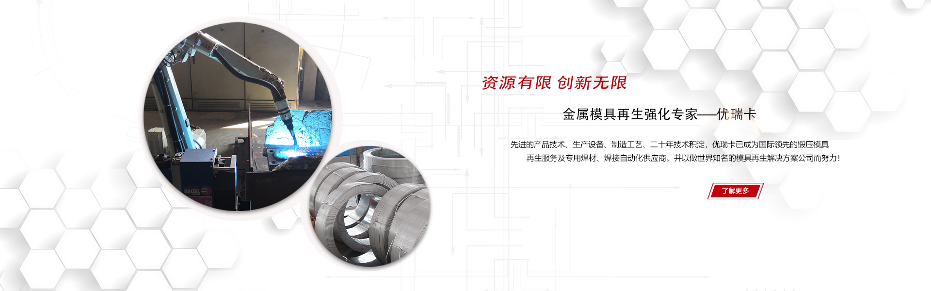 優瑞卡是國內知名的鍛造模具再生服務及專用焊材、模具焊接系統供應商,我們吸收引用美國、德國、日本等國的先進模具焊修經驗,結合國內企業情況,不斷創新并研發了更加有效、更加成熟、更易操作的模具再生技術,為廣大企業在鍛造、沖壓、壓鑄、塑料模具及機械部件維修方面提供優質的焊接材料、自動化焊接系統、模具加工用刀具和完善的再生修復服務。優瑞卡正逐漸成為國內外鍛造與沖壓企業創造更大利潤、提升核心競爭力不可或缺的重要推動力!